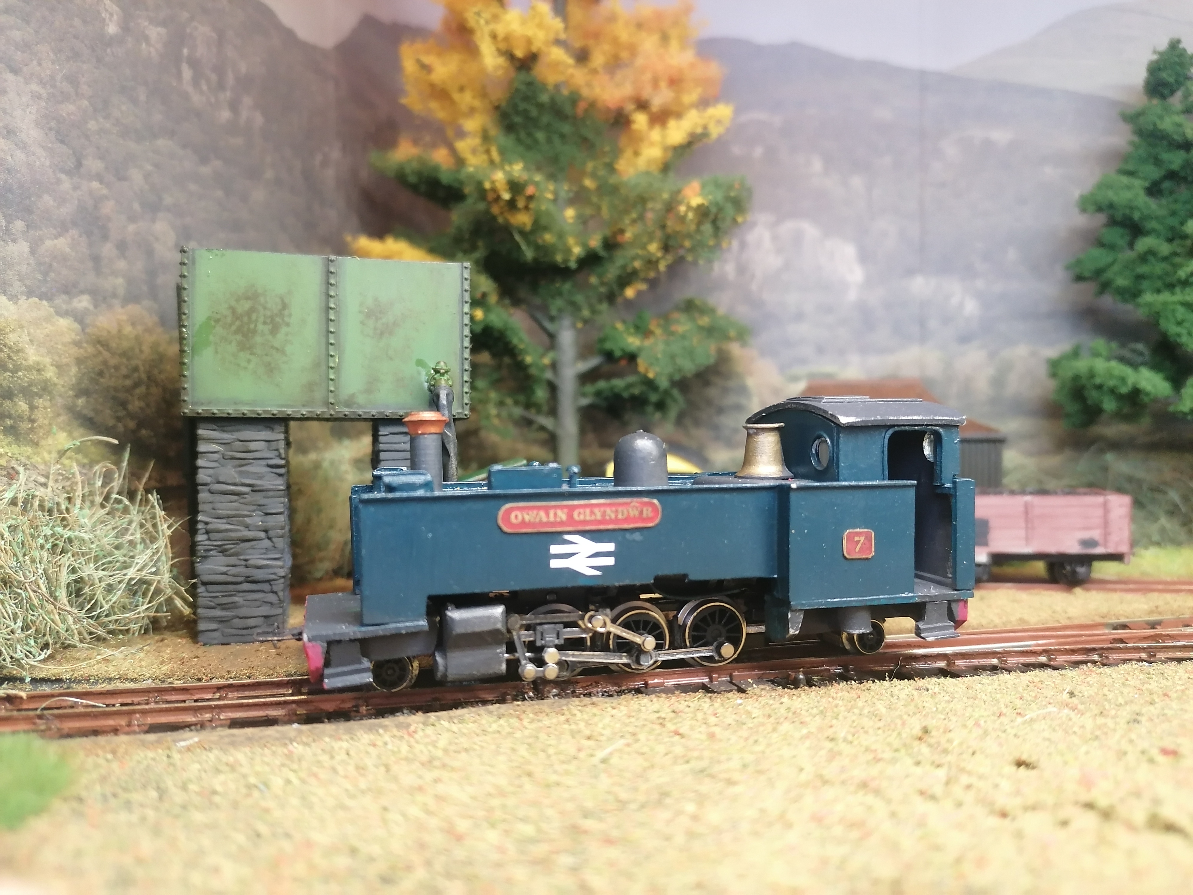 Mynydd y Ddraig (Dragon Mountain) is based on Devil’s Bridge, the upper terminus of the Vale of Rheidol narrow gauge railway, in mid-Wales. The layout is set in the mid-1970s, when the line was the last steam operation on BR, with the locomotives and stock in rail blue livery and carrying the “arrows of indecision”.