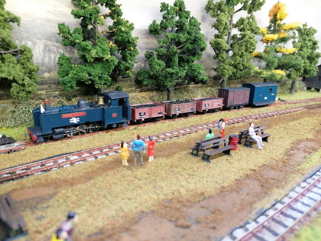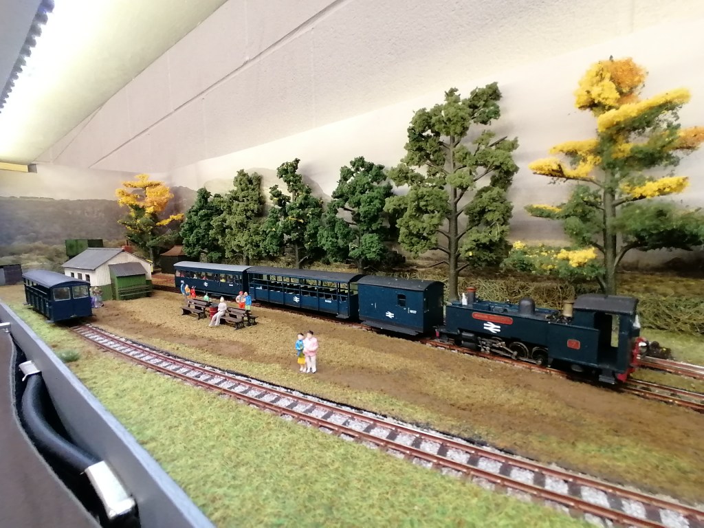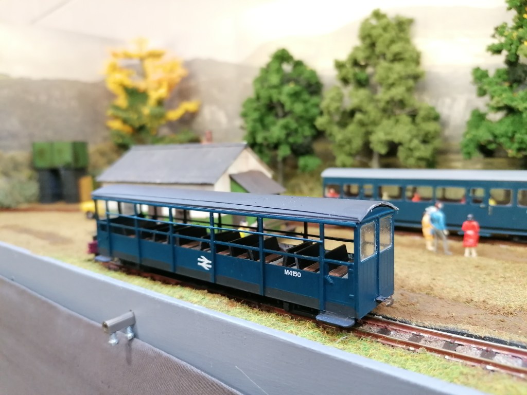 Scenic items are a mix of kit and scratch built items, Woodland Scenics and 3D printed details. Locos are kit built or 3D printed bodies on modified RTR N gauge chassis, whilst the coaching stock is scratch-built using self designed plasticcard bodies cut on a Silhouette cutter, on Dundas bogies. The P-way stock is from a variety of kit sources.